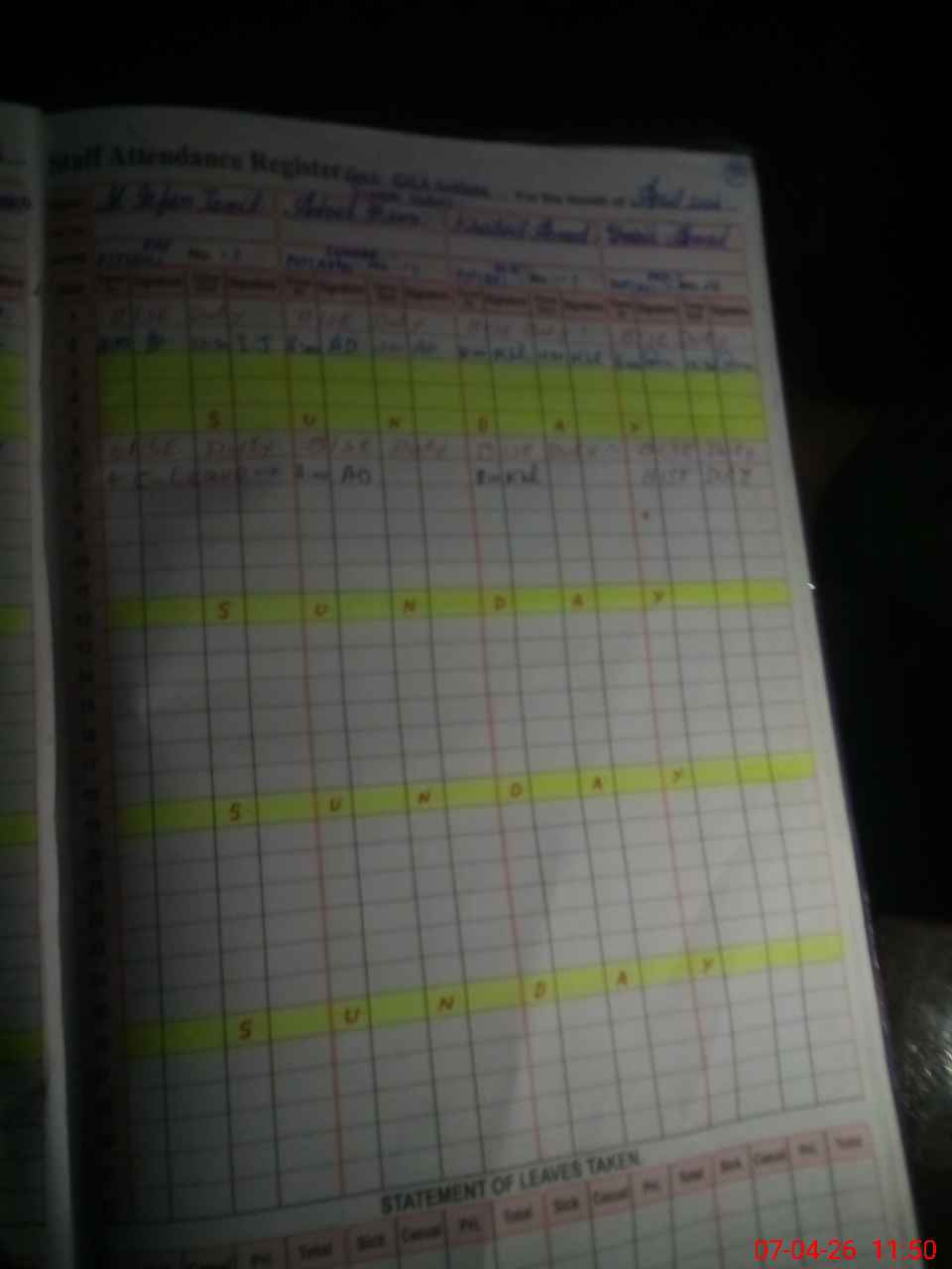 | Leave | Duty | Absent | Maternity | Medical | Ex- Pak |