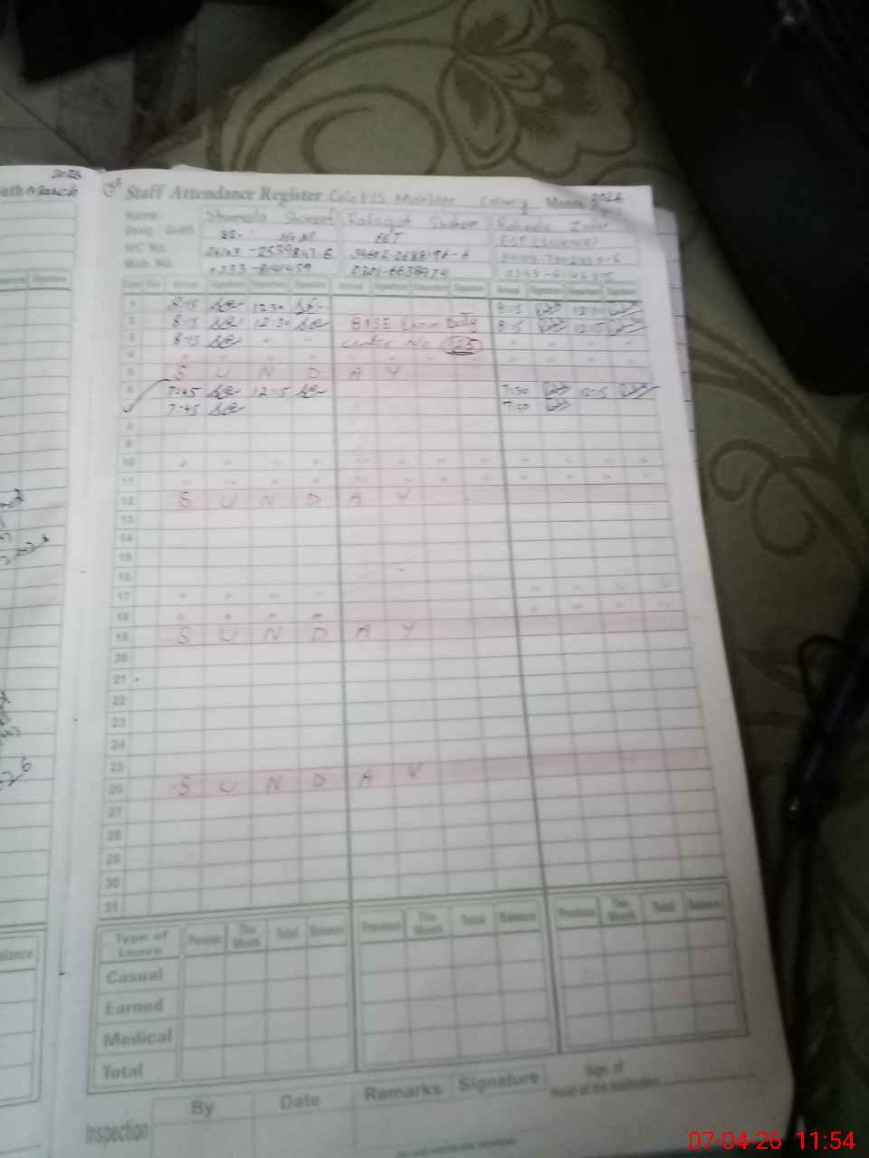 | 34**** | Ra**** Sh**** | EST (Math) | Regular | 0 | 0 | 0 | 0 | 0 | 0 | 0 | 0 | 0 | Exam Duty |