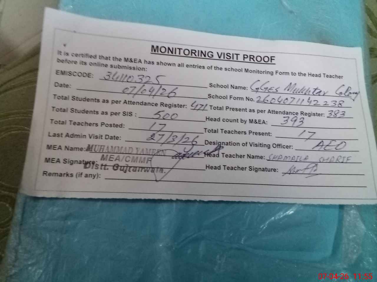 | EMIS Code: 34110325 | Name of School: GGES MUKHTAR COLONY | |||