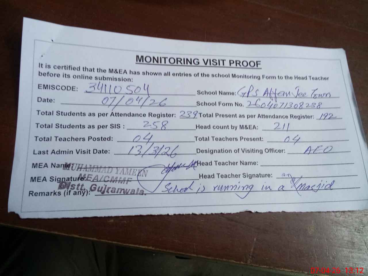 | EMIS Code: 34110504 | Name of School: GPS AFFAN JEE TOWN | |||