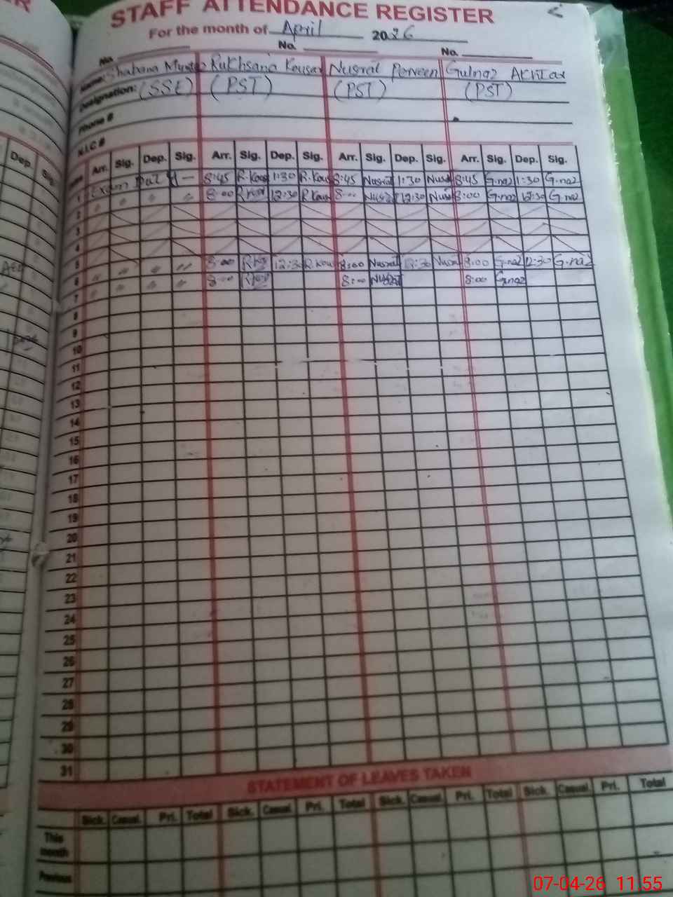 | 36**** | Sh**** Mu**** | SSE English | Contract | 0 | 0 | 0 | 0 | 0 | 0 | 0 | 0 | 0 | Exam Duty |