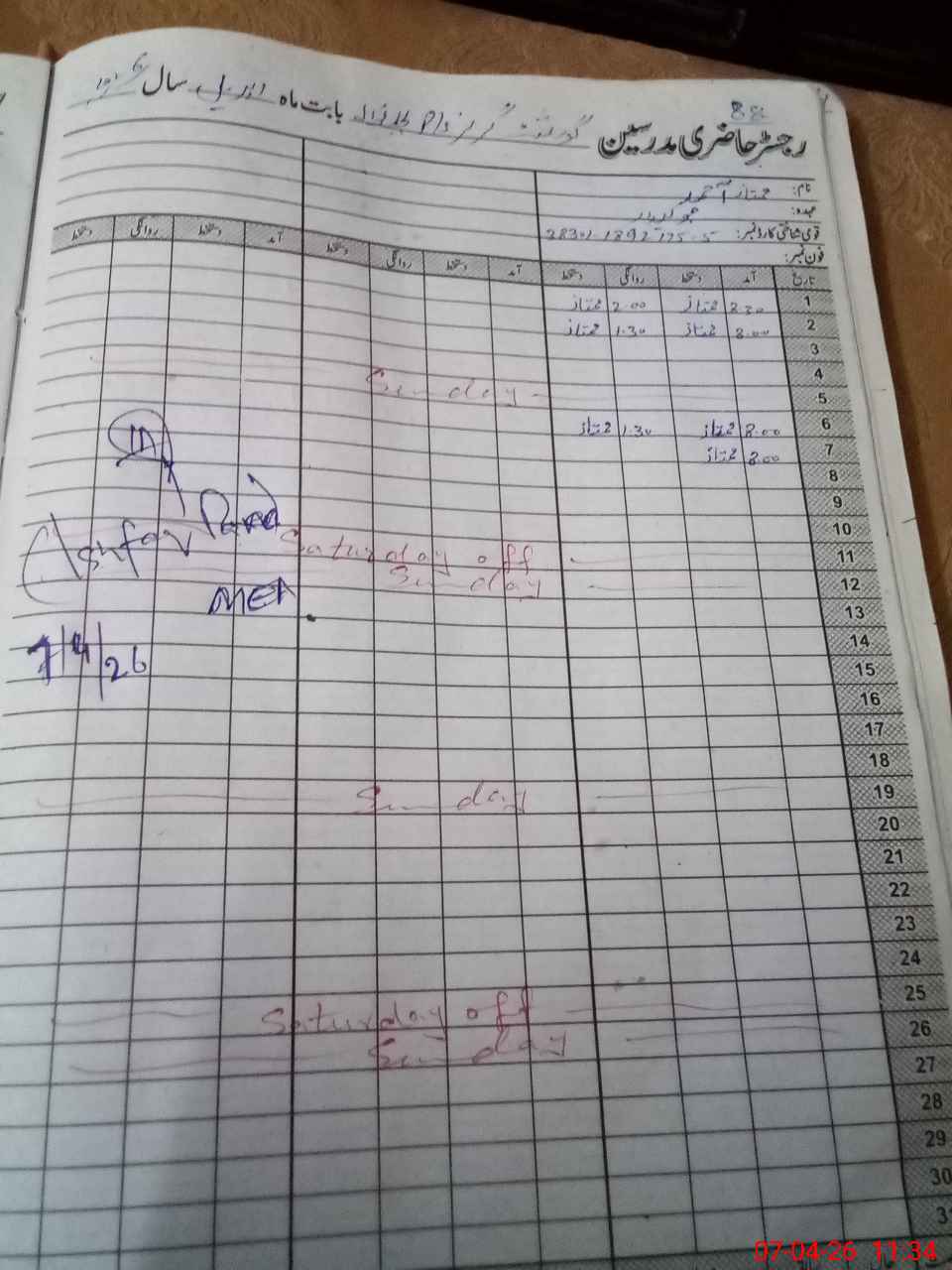 | Name: Al**** Iq**** Designation: (School Headmaster's/Headmistress's) PST Phone/Cell Number: 03**** |