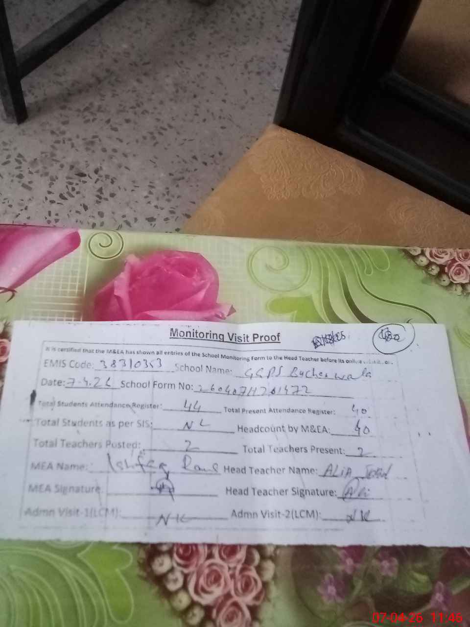 | EMIS Code: 38310353 | Name of School: GGPS BUCHAN WALA | |||