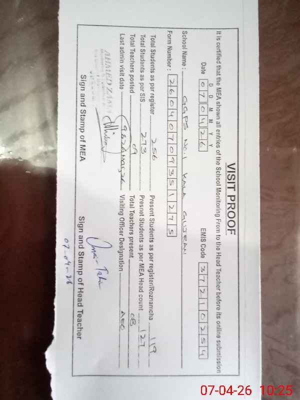 | EMIS Code: 37210254 | Name of School: GGPS NO. 1 KALA GUJRAN | |||