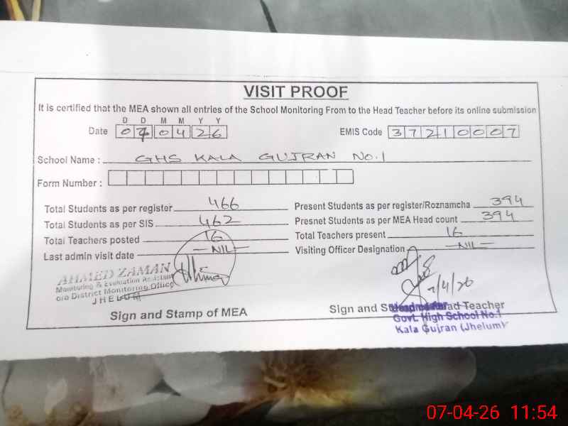 | EMIS Code: 37210007 | Name of School: GHS KALA GUJRAN NO. 1 | |||