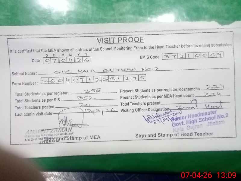 | EMIS Code: 37210009 | Name of School: GHS KALA GUJRAN NO. 2 | |||