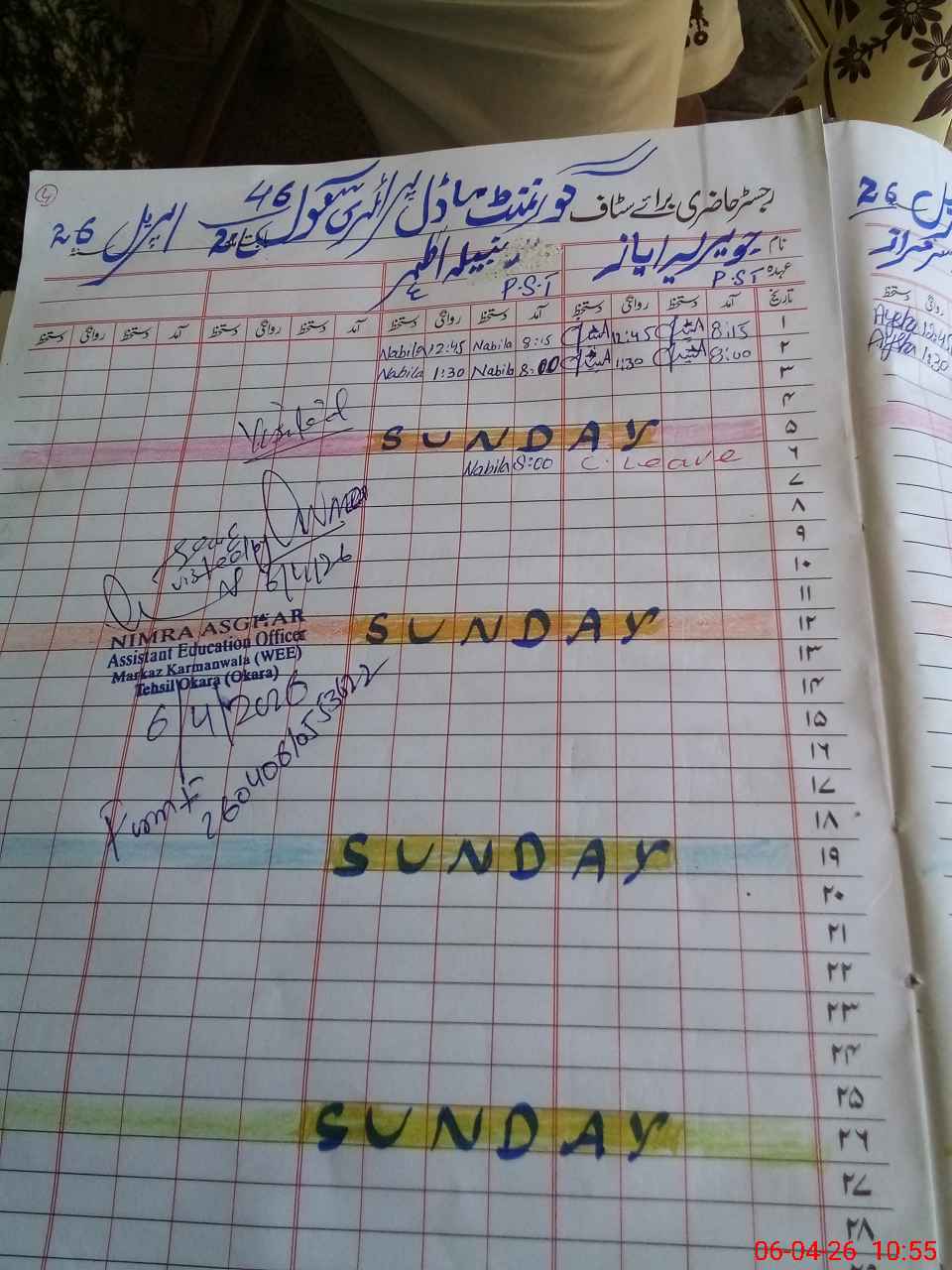 | CNIC | Full Name | Designation | R/C | Absence During Last Calender Month |