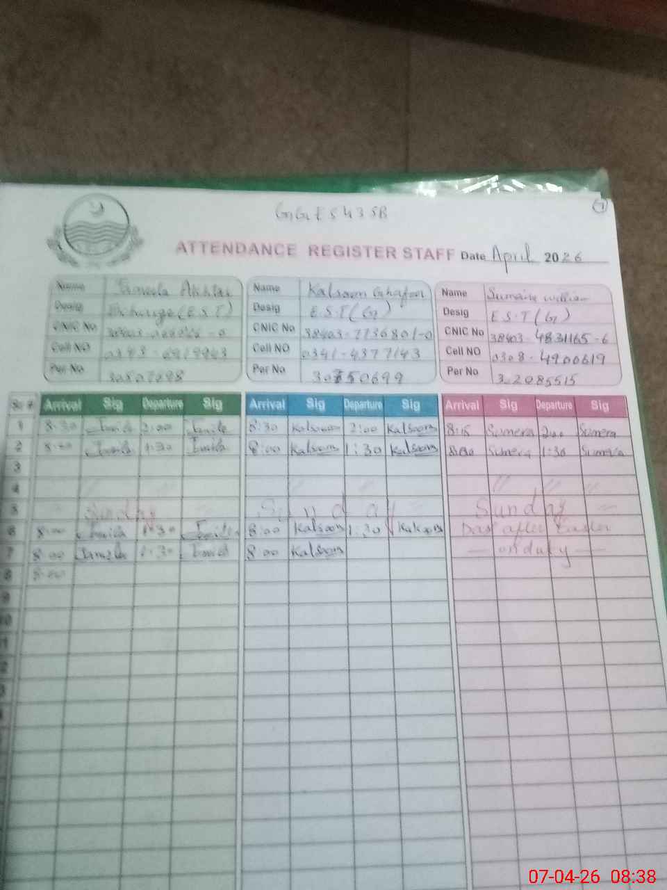 | Name: NA**** MA**** Designation: (School Headmaster's/Headmistress's) SST Phone/Cell Number: 03**** |