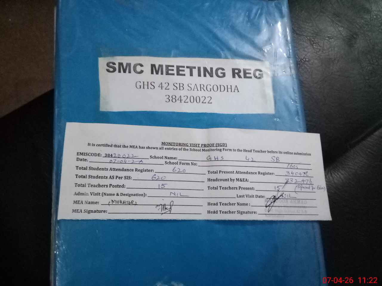 | EMIS Code: 38420022 | Name of School: GHS CHAK NO.42 SB SGD | |||