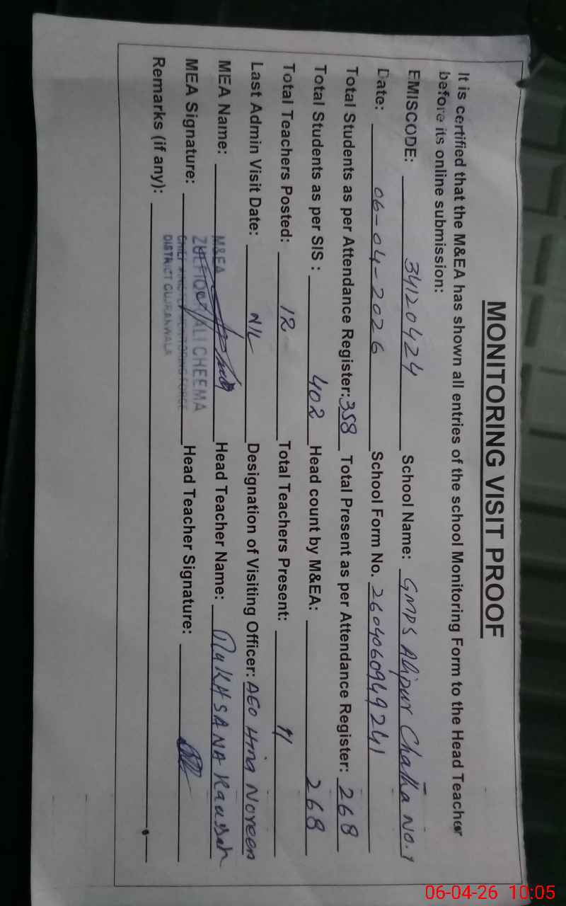 | EMIS Code: 34120424 | Name of School: GMPS ALI PUR CHATHA NO.1 | |||