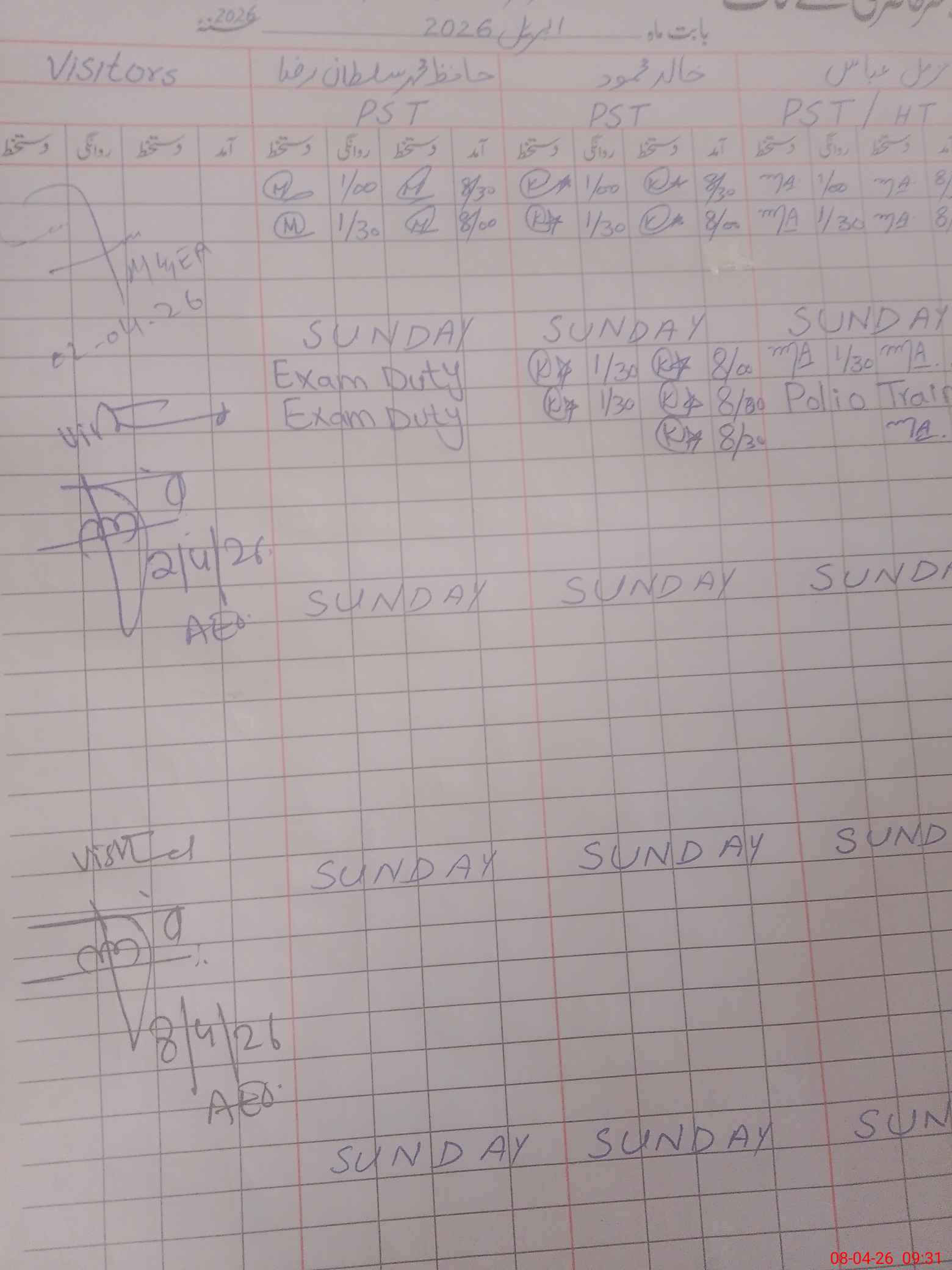 | Monitoring Date: 08-04-2026 | Start Time: 08-04-2026 09:01 AM | End Time: 08-04-2026 09:32 AM | Name of MEA: Fa**** Ah**** | |