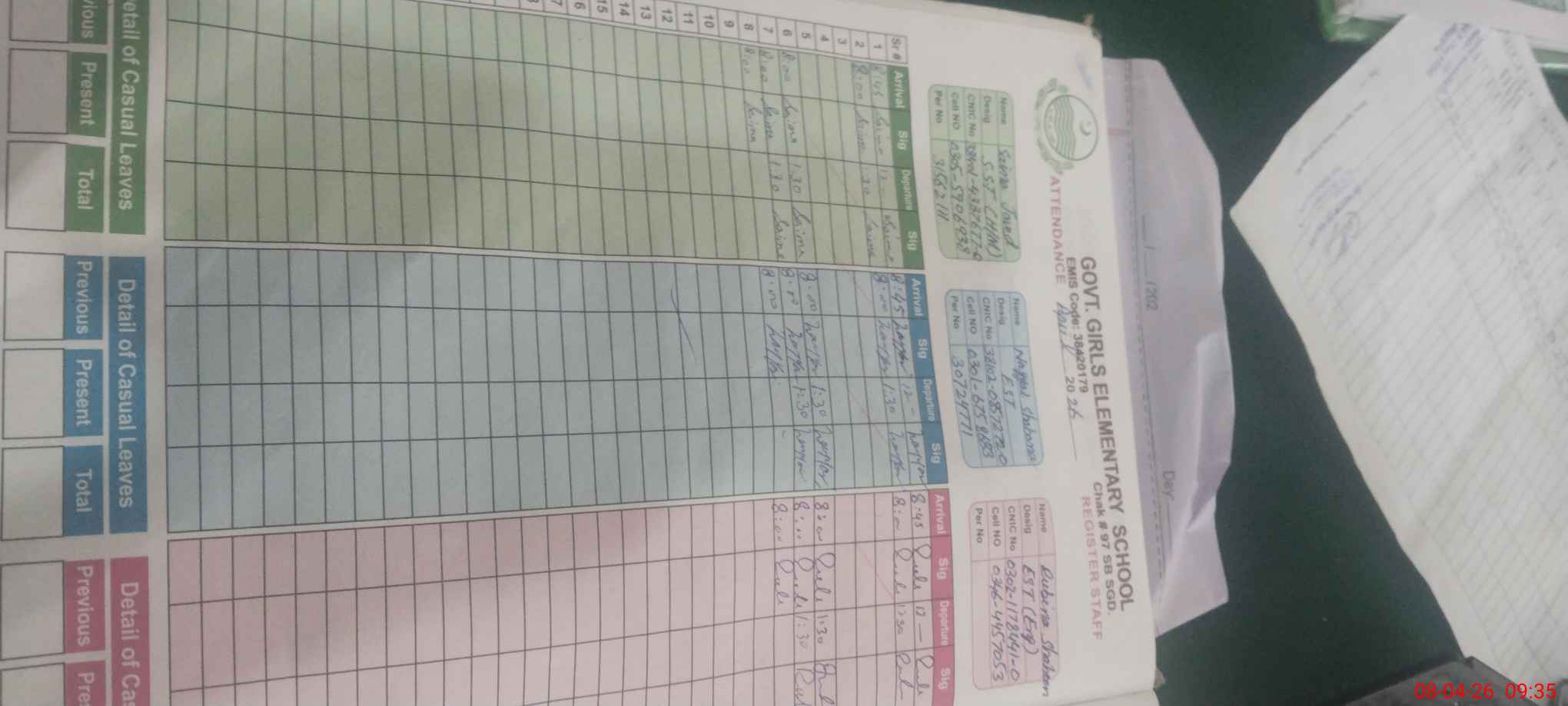 | CNIC | Full Name | Designation | R/C | Absence During Last Calender Month |