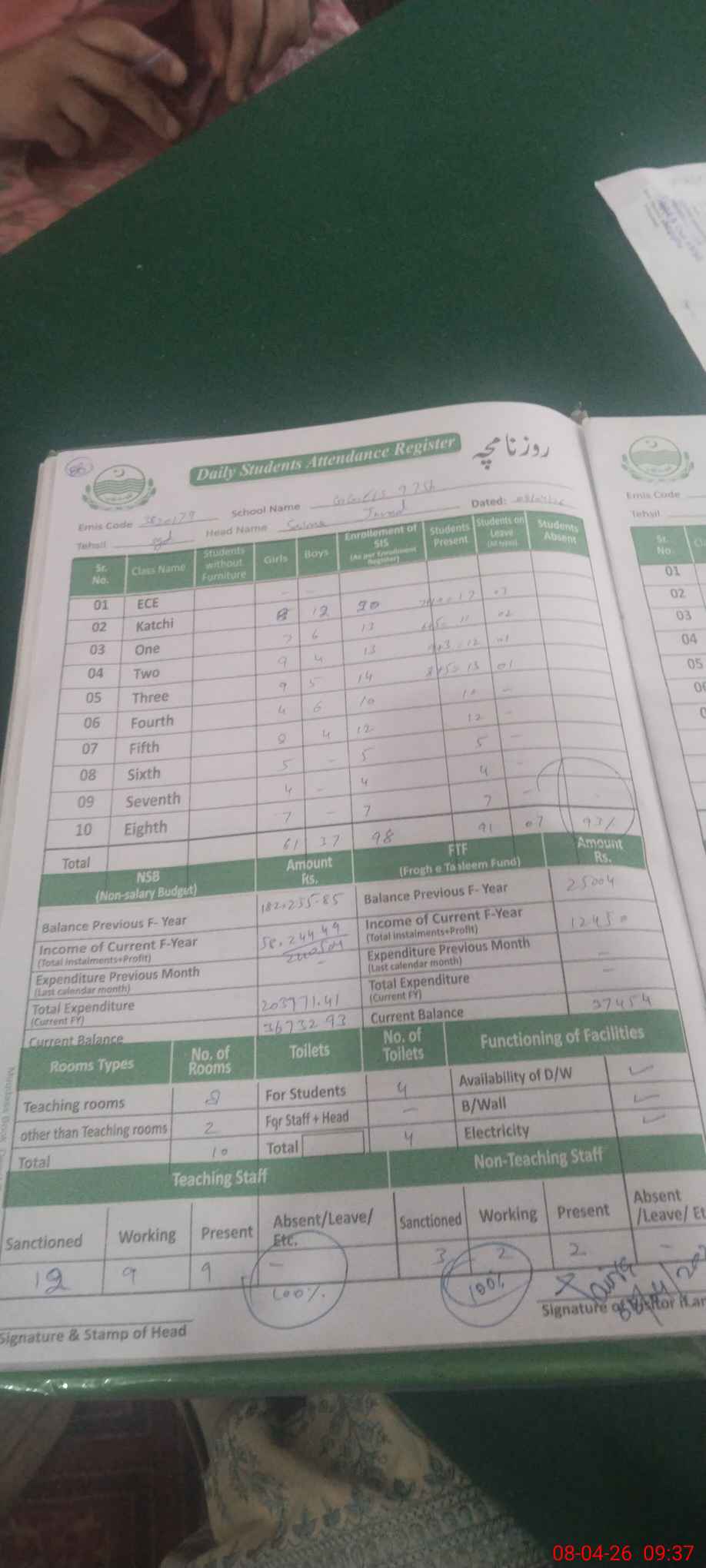 | Attendance Register | Head Teacher | MEA with School | Visit Proof |
