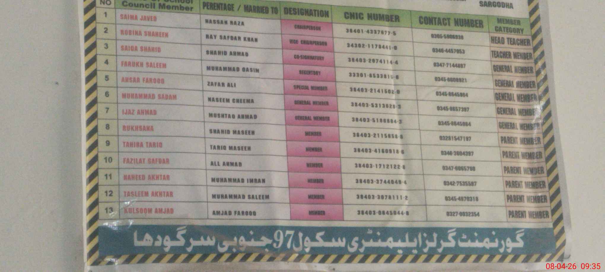 | District: SARGODHA | Tehsil: SARGODHA | Markaz: 49-NB - FEMALE | Level: Middle | |