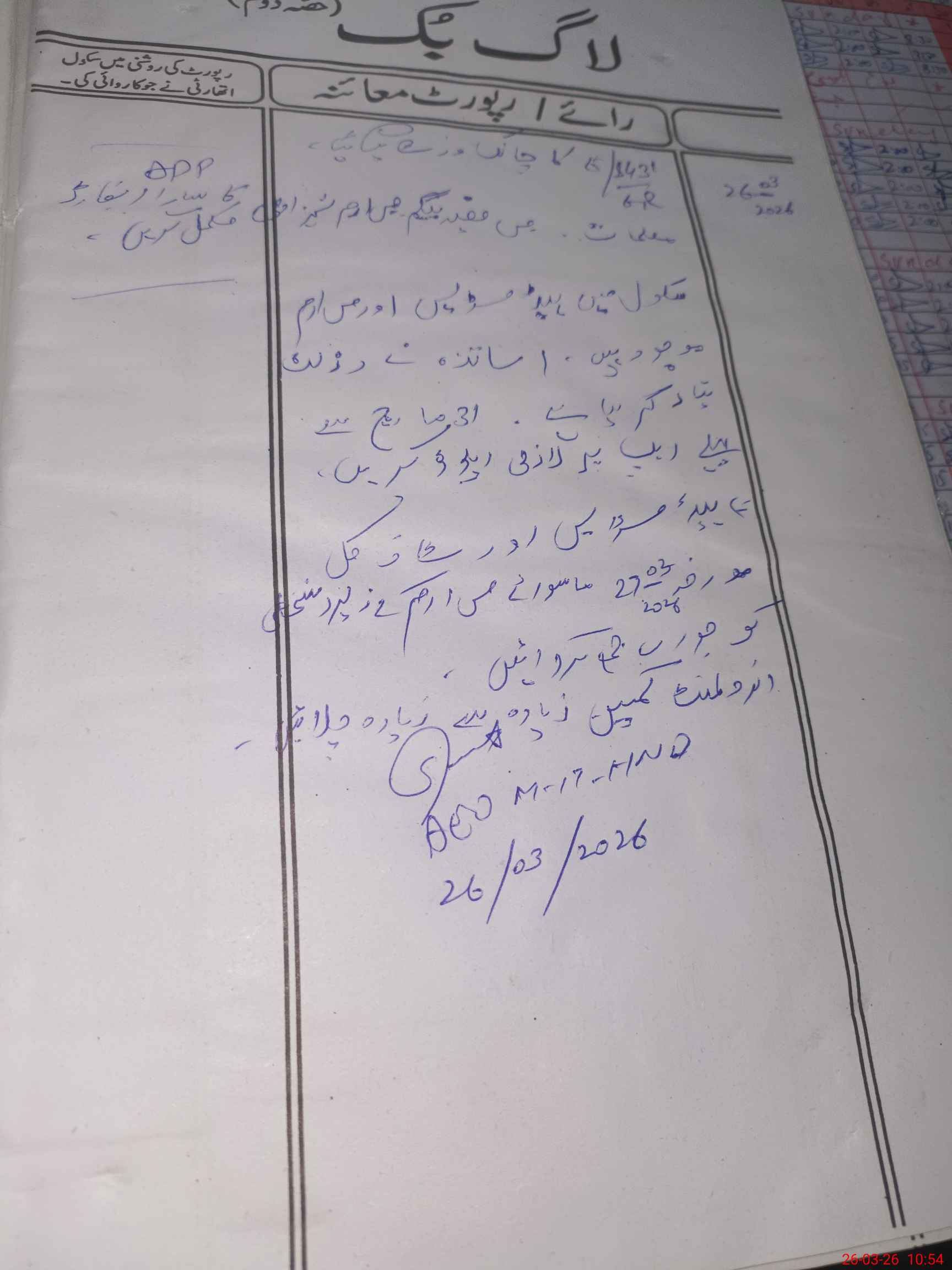 | Monitoring Date: 26-03-2026 | Start Time: 26-03-2026 10:46 AM | End Time: 26-03-2026 10:56 AM | Name of MEA: SH**** AZ**** | |