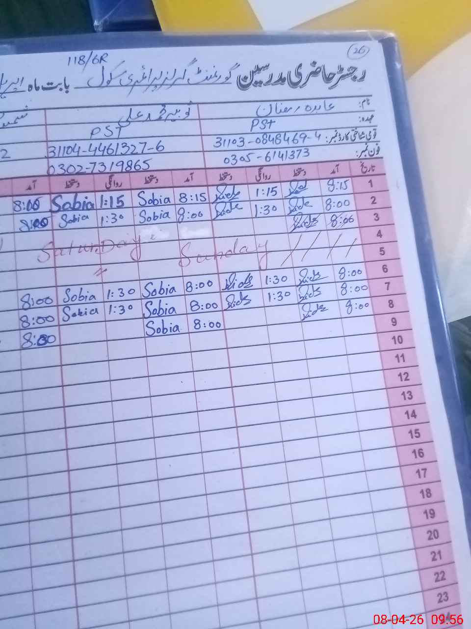 | Name: Na**** Pa**** Designation: (School Headmaster's/Headmistress's) PST Phone/Cell Number: 03**** |