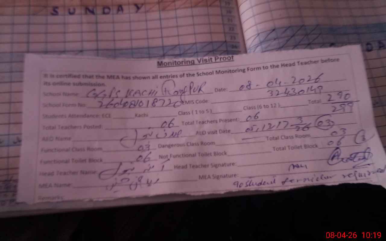 | EMIS Code: 32430149 | Name of School: GGPS KACHI RANG PUR | |||