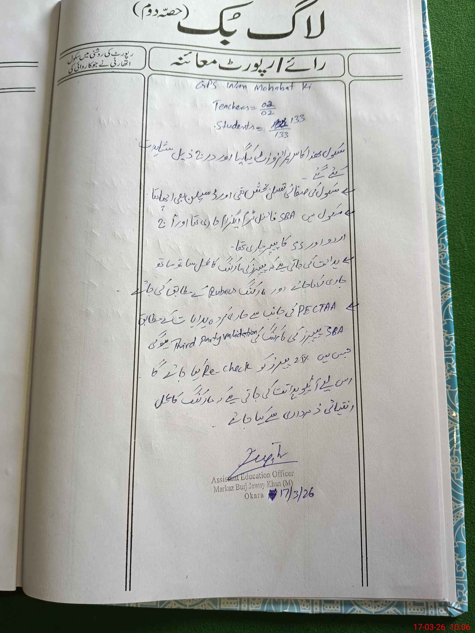 | Certified that this School was Inspected by the Undersigned MEA/DMO Today and the Information Stated Above is as Per Record. | |||||