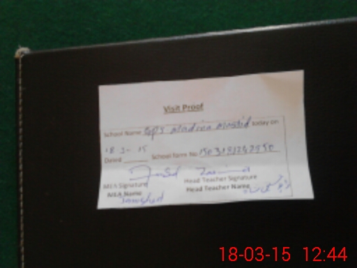 | Attendance Register | Head Teacher | MEA with School | Visit Proof |