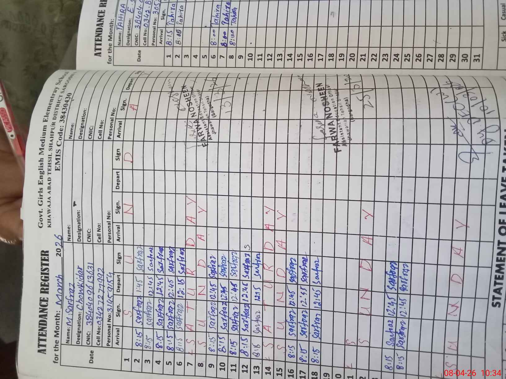 | Name: TA**** BA**** Designation: (School Headmaster's/Headmistress's) EST Phone/Cell Number: 03**** |