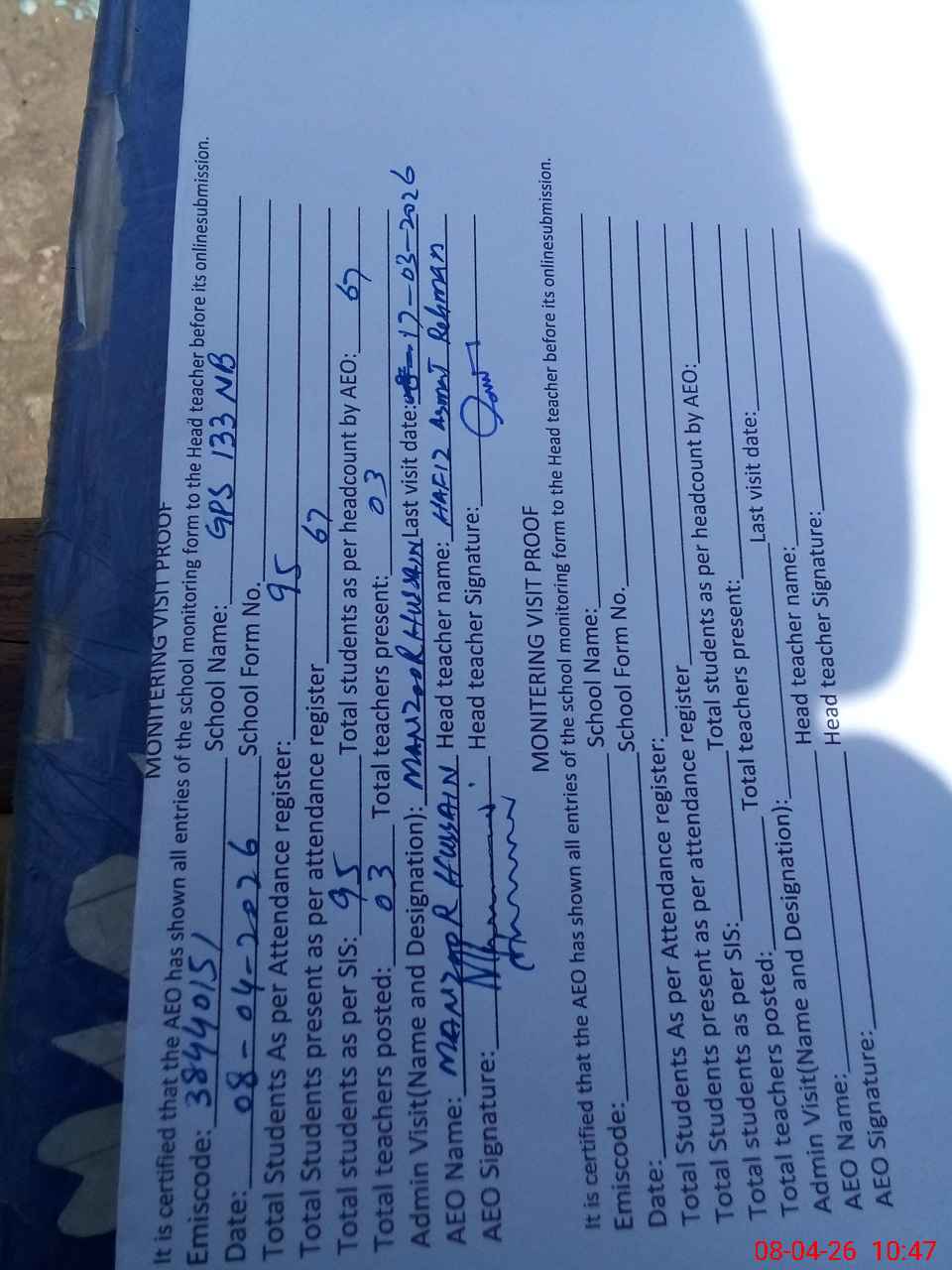 | EMIS Code: 38440151 | Name of School: GPS CHAK NO.133 NB | |||