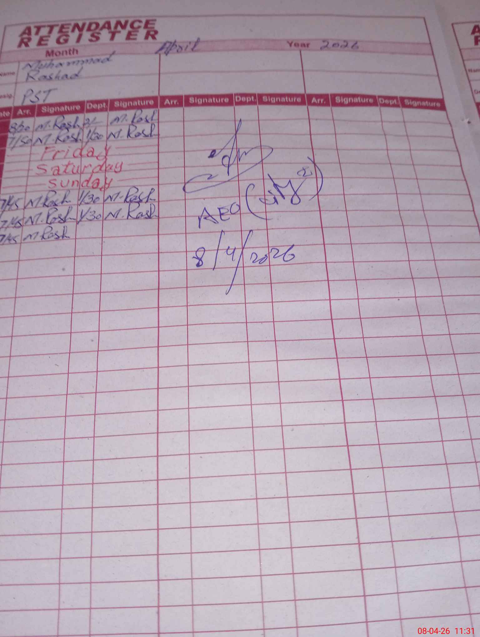 | Monitoring Date: 08-04-2026 | Start Time: 08-04-2026 11:22 AM | End Time: 08-04-2026 11:33 AM | Name of MEA: Am**** Ra**** | |