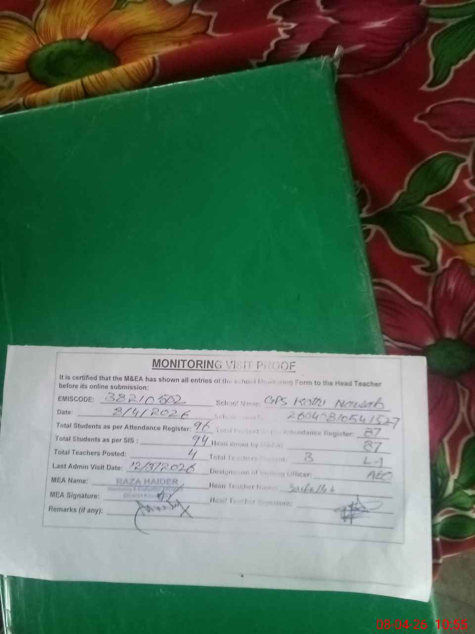 | EMIS Code: 38210502 | Name of School: GPS KOTHI NAWAB | |||