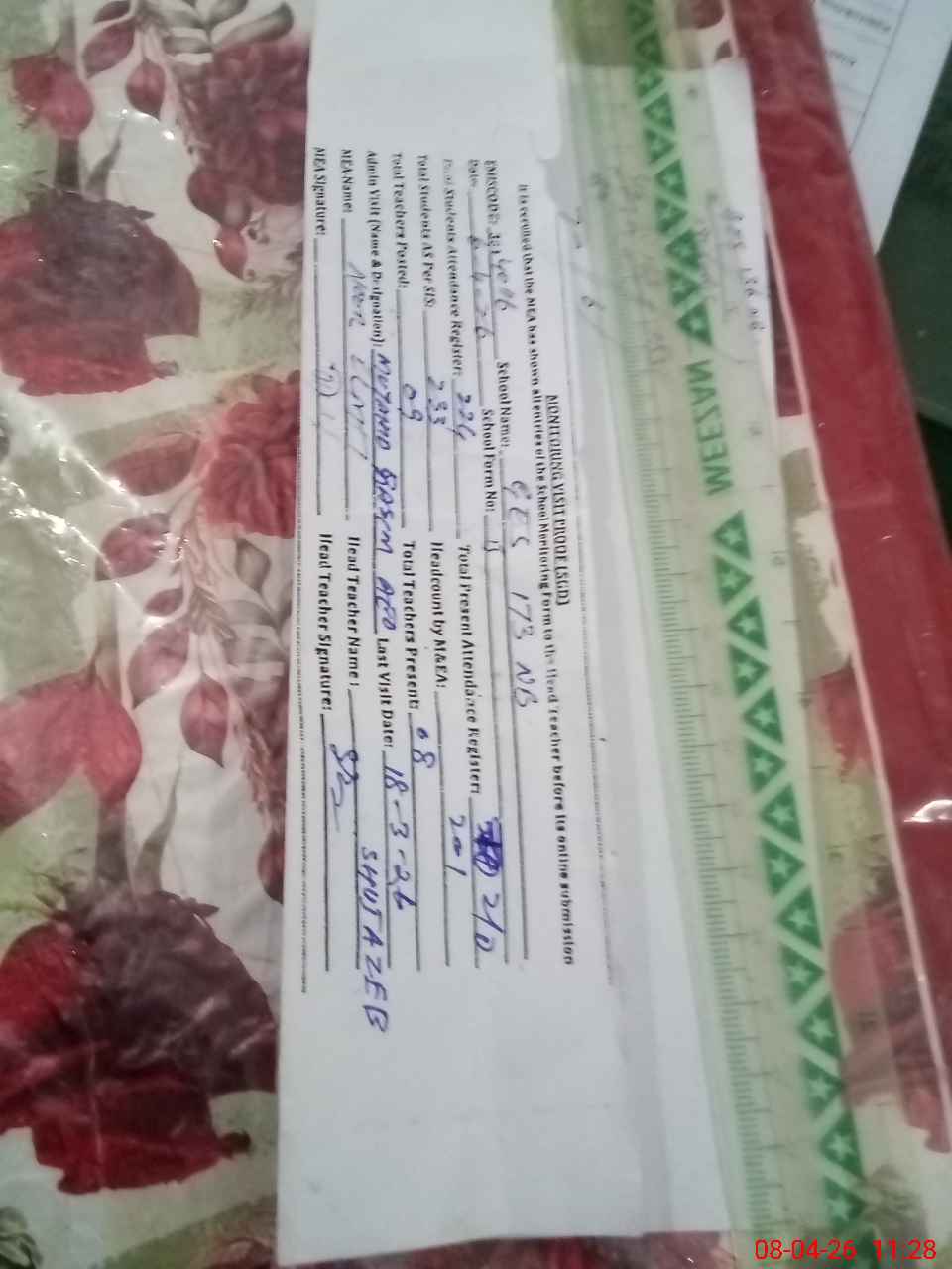| Certified that this School was Inspected by the Undersigned MEA/DMO Today and the Information Stated Above is as Per Record. | |||||