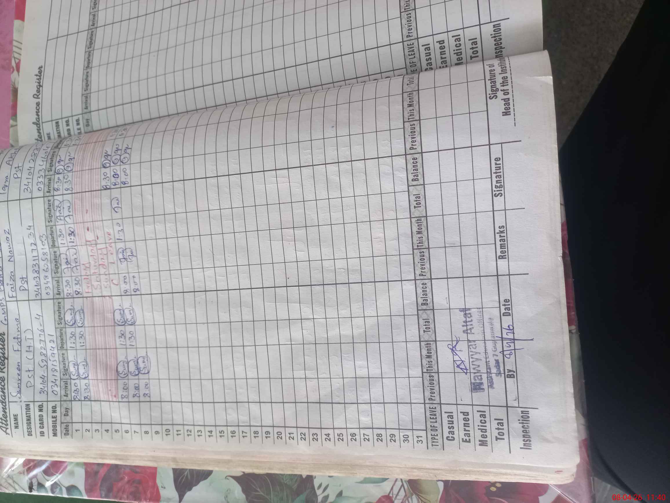 | Name: Sa**** Designation: (School Headmaster's/Headmistress's) PST/PTC/JV Phone/Cell Number: 03**** |