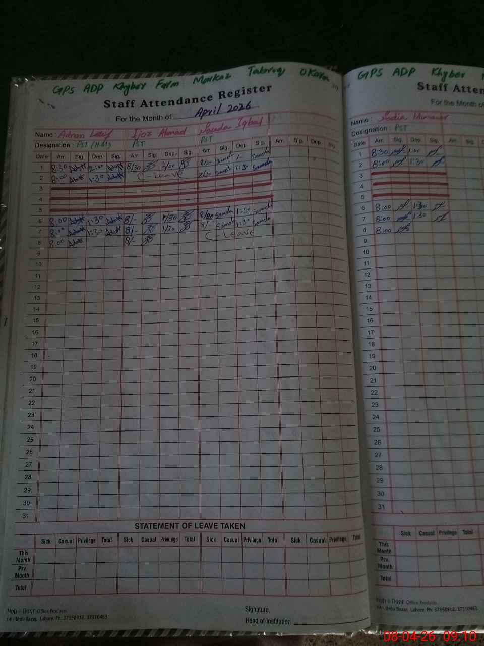 | 35**** | Sa**** Iq**** | PST Arts | Regular | 1 | 0 | 0 | 0 | 0 | 0 | 0 | 0 | 1 | Casual |