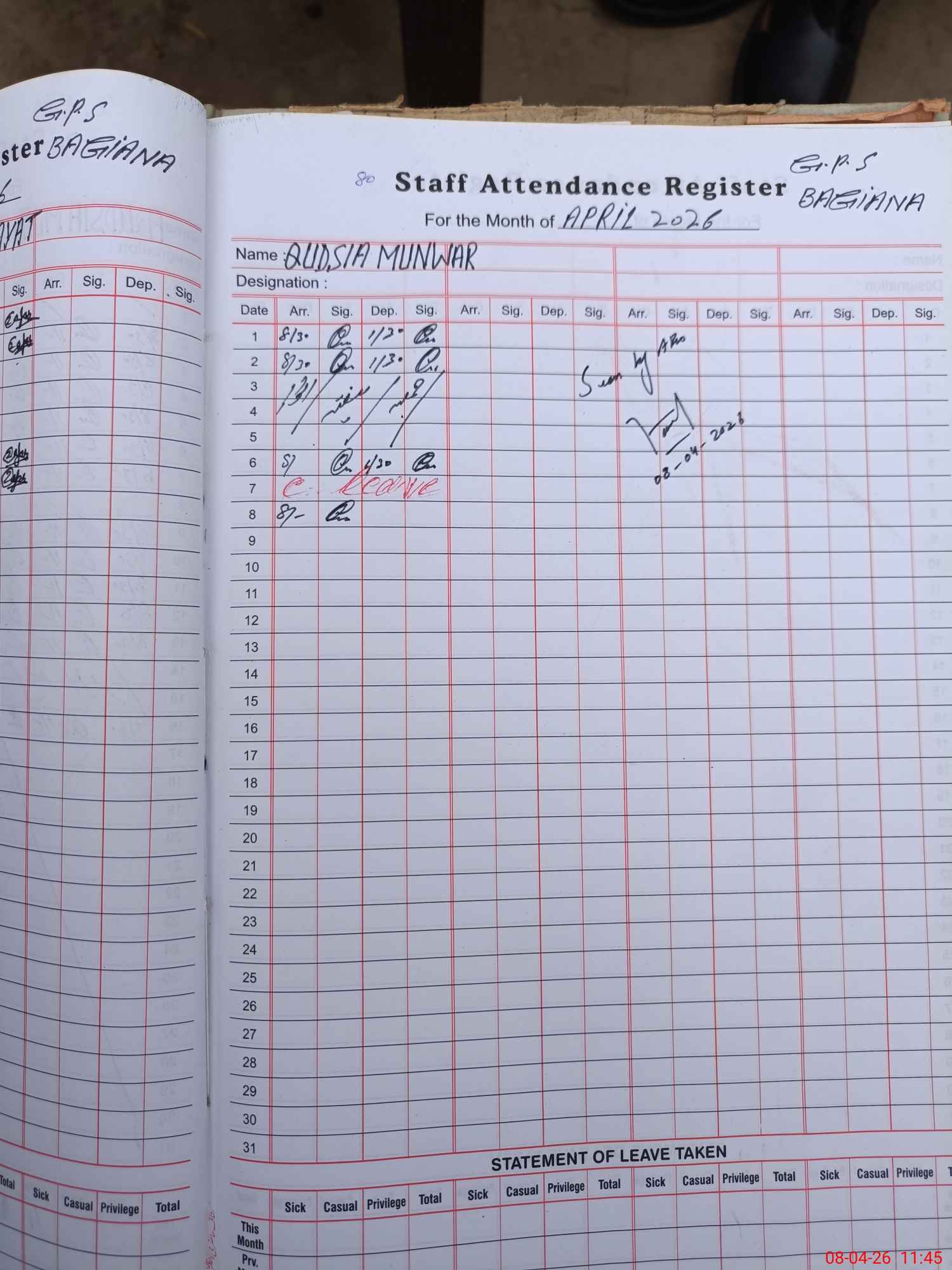 Leave Type | Remarks for today (Leave,Training, Exam,Absent,Late, Other duty) |