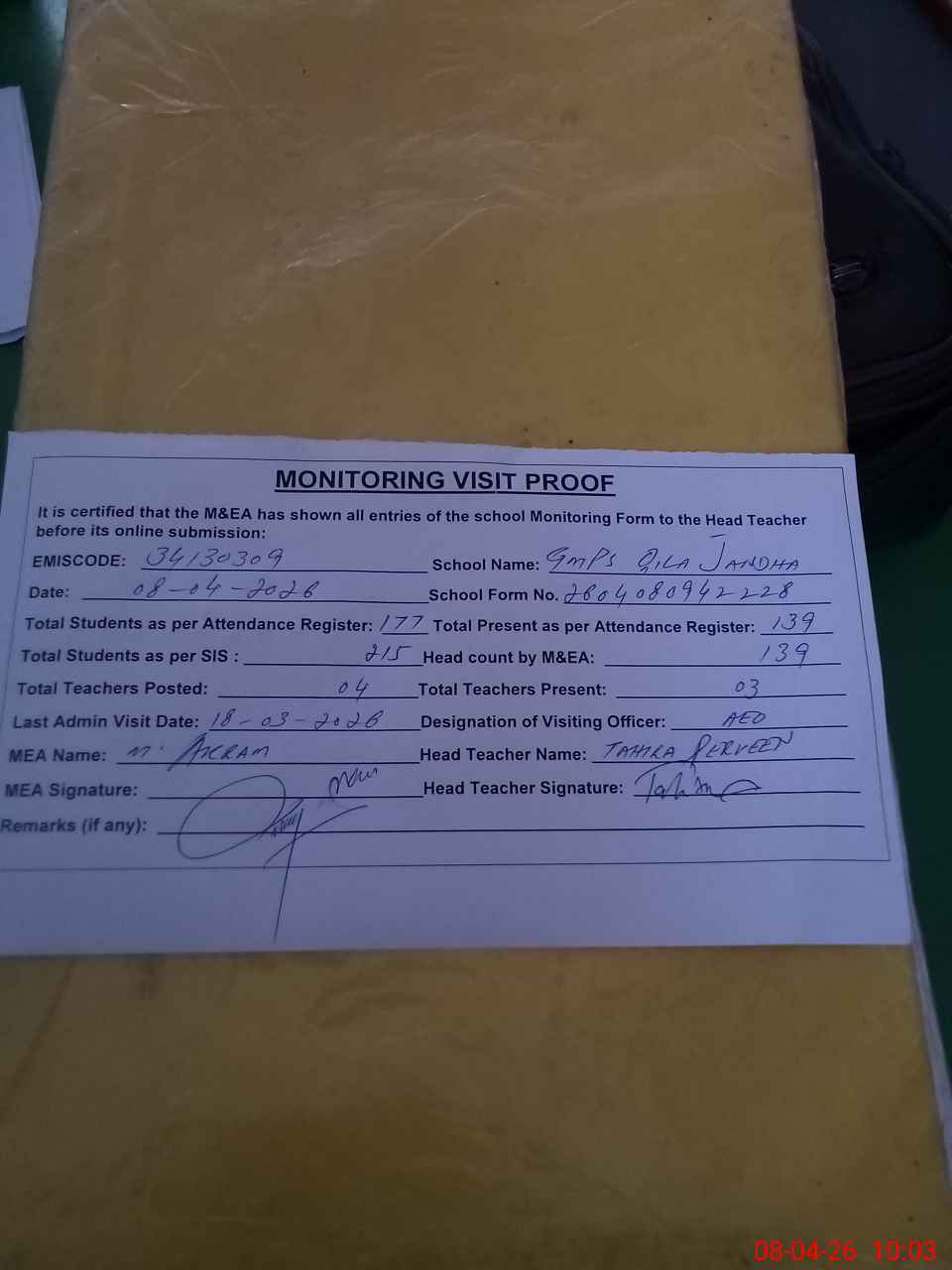 | EMIS Code: 34130309 | Name of School: GMPS QILA JANDA | |||
