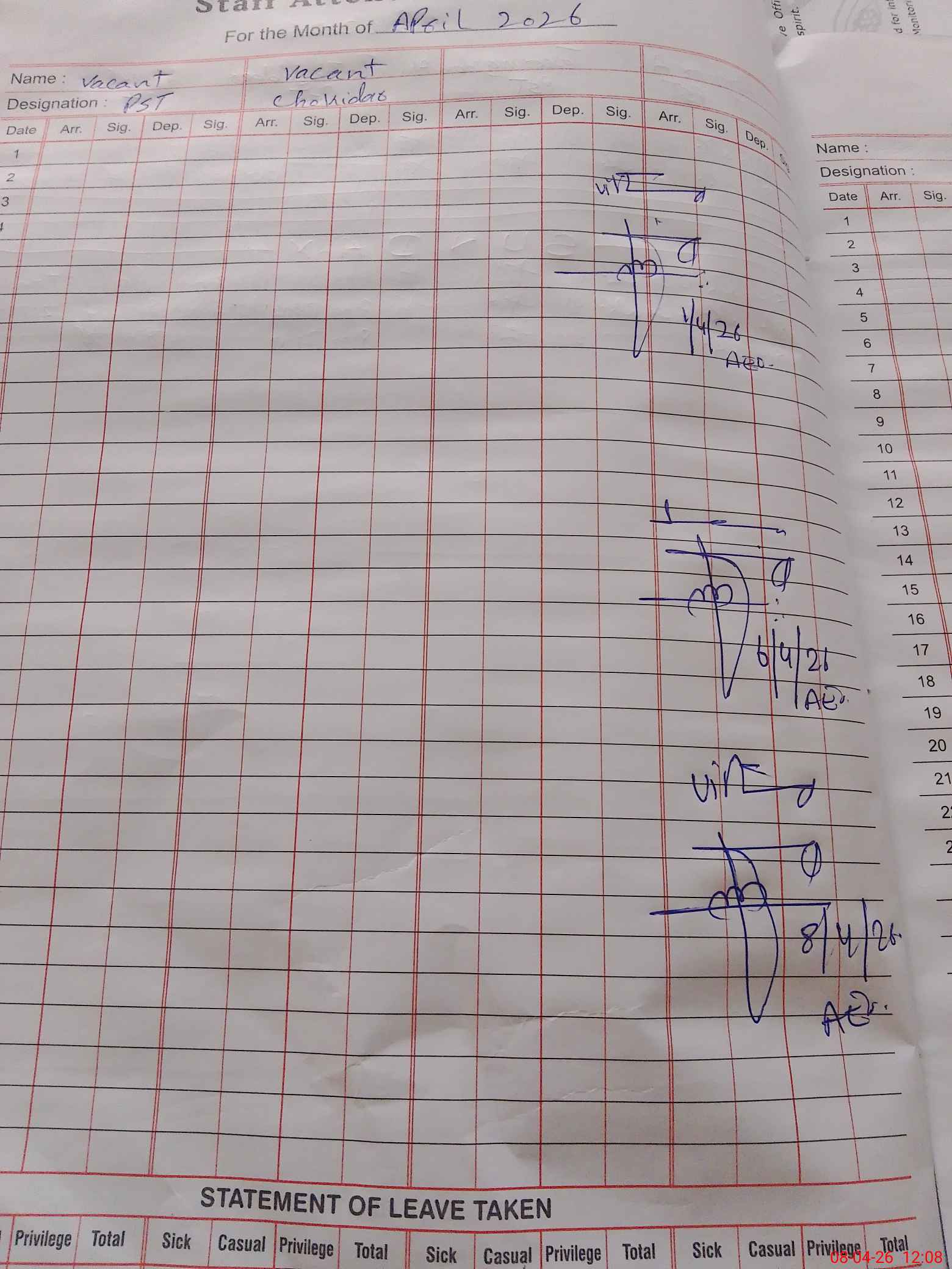 | Leave | Duty | Absent | Maternity | Medical | Ex- Pak |