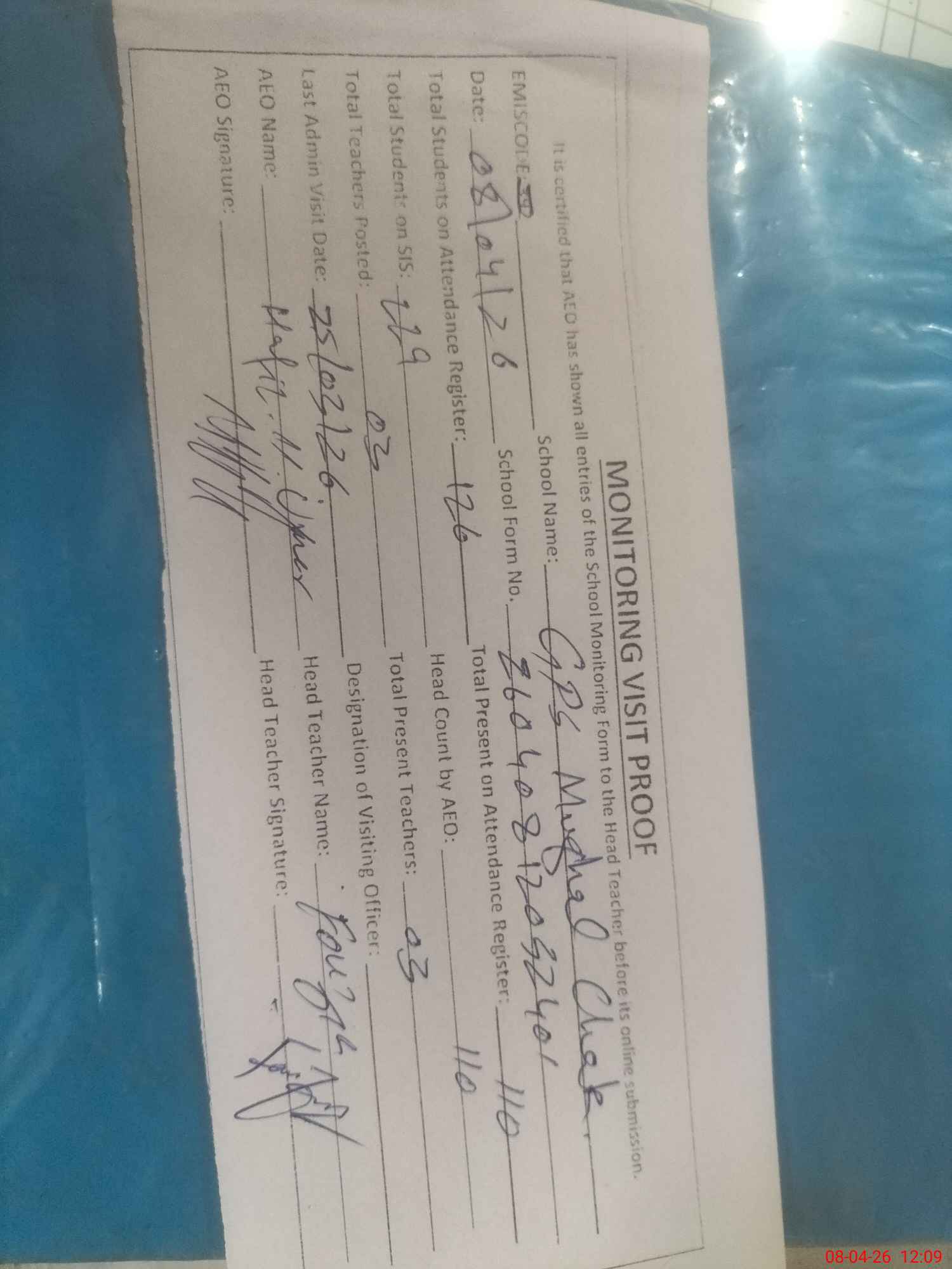 | EMIS Code: 34110284 | Name of School: GPS MUGHAL CHAK KALAN | |||