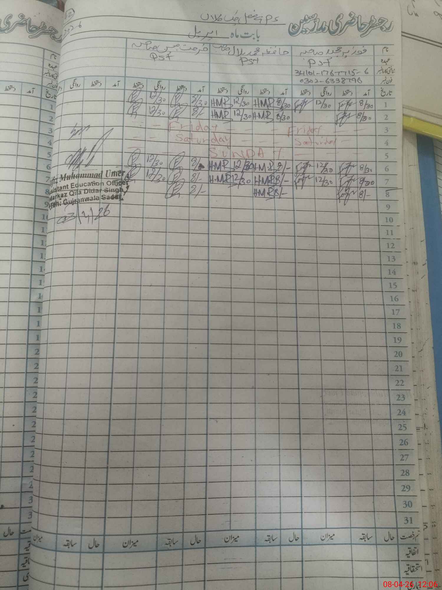 | Name: Fo**** Ma**** Designation: (School Headmaster's/Headmistress's) PST Phone/Cell Number: 03**** |