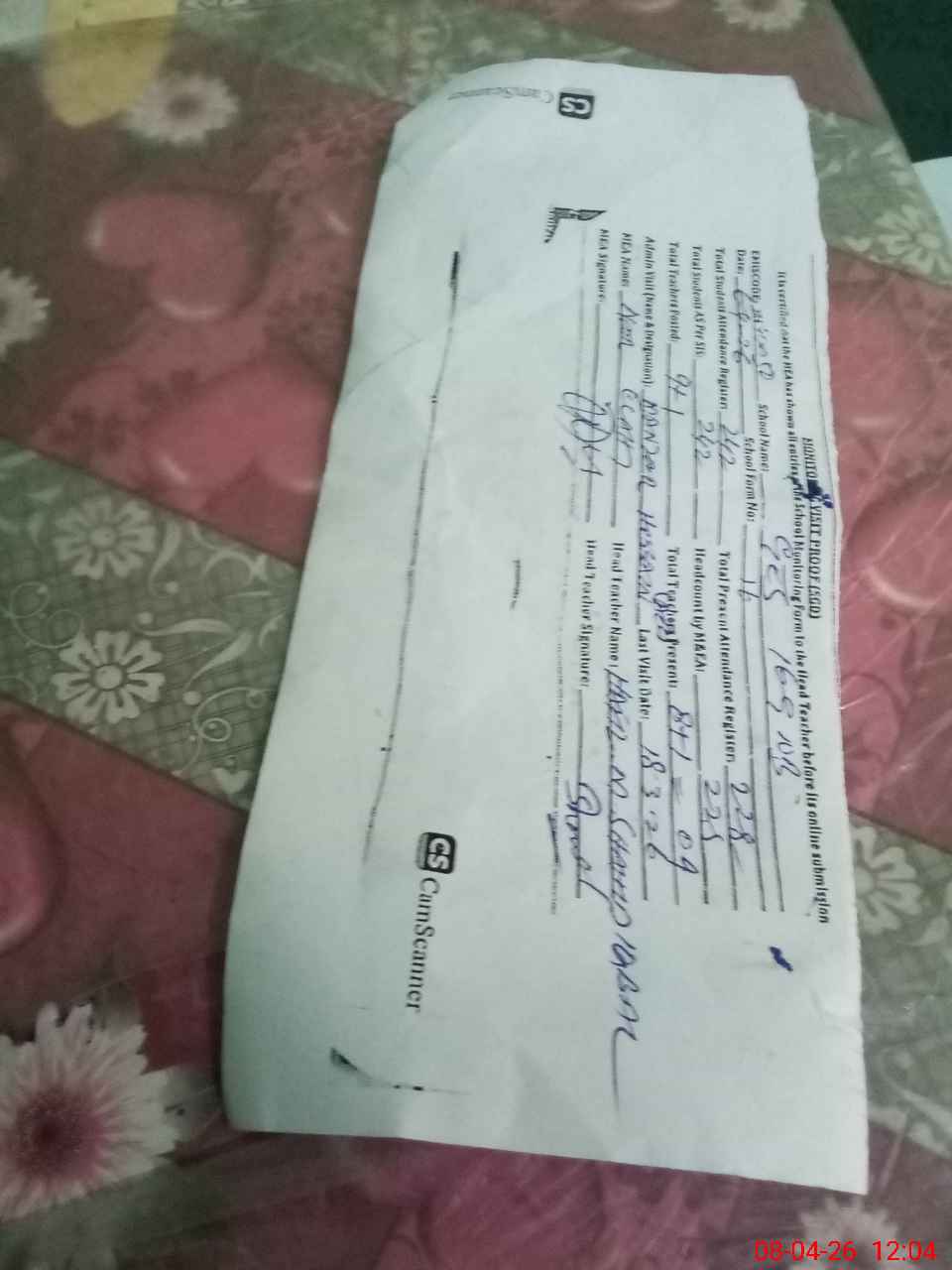 | Attendance Register | Head Teacher | MEA with School | Visit Proof |