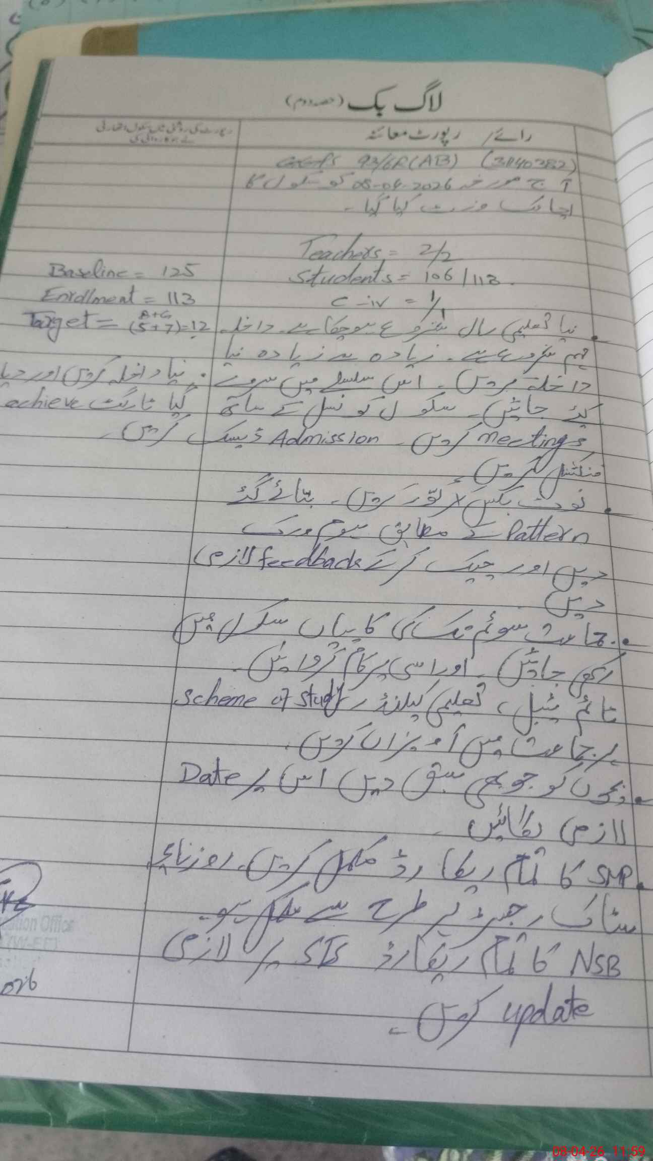 | Attendance Register | Head Teacher | MEA with School | Visit Proof |