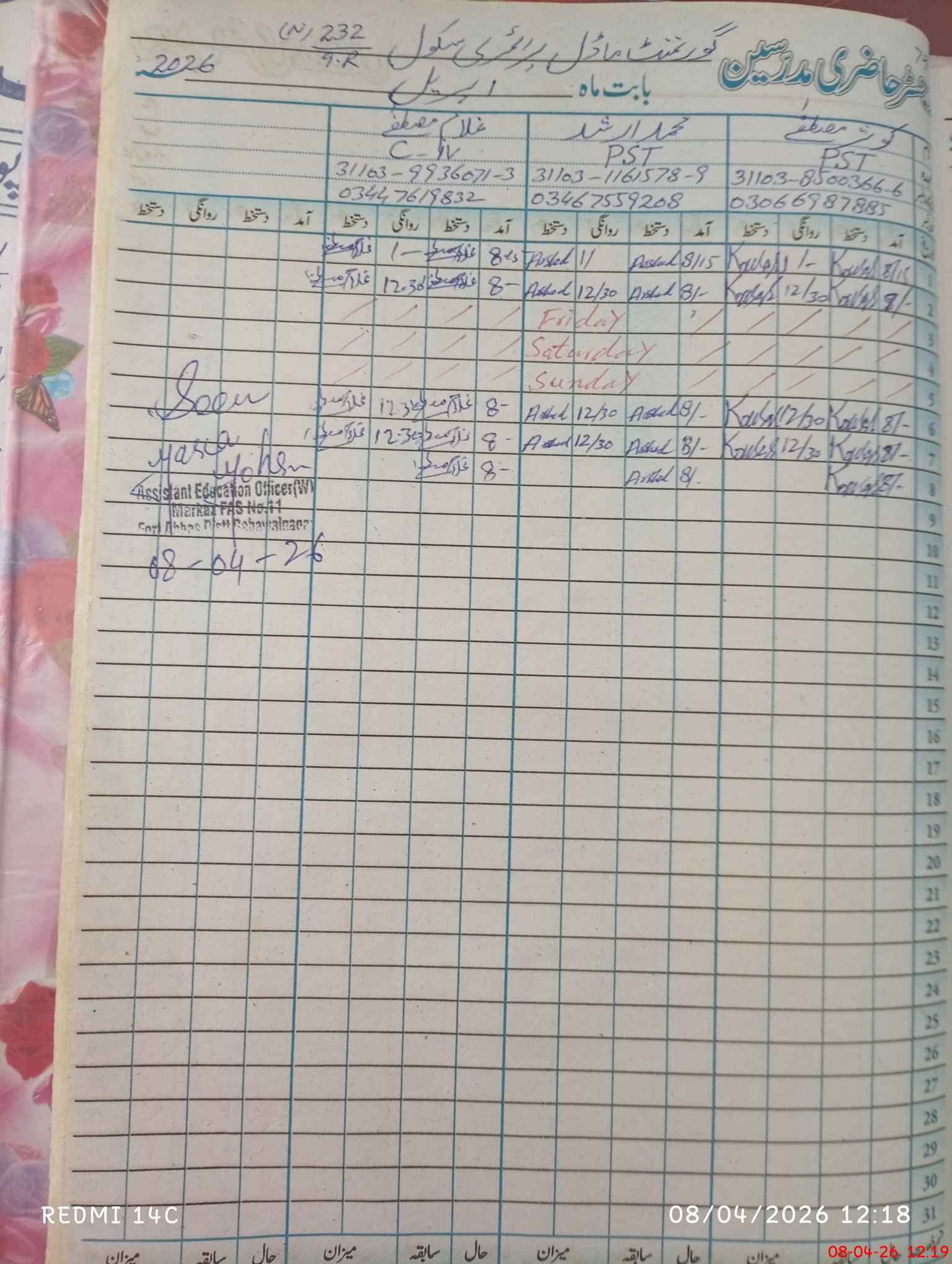 | EMIS Code: 31130295 | Name of School: GMPS CHAK NO. 232/9-R NORTH | |||