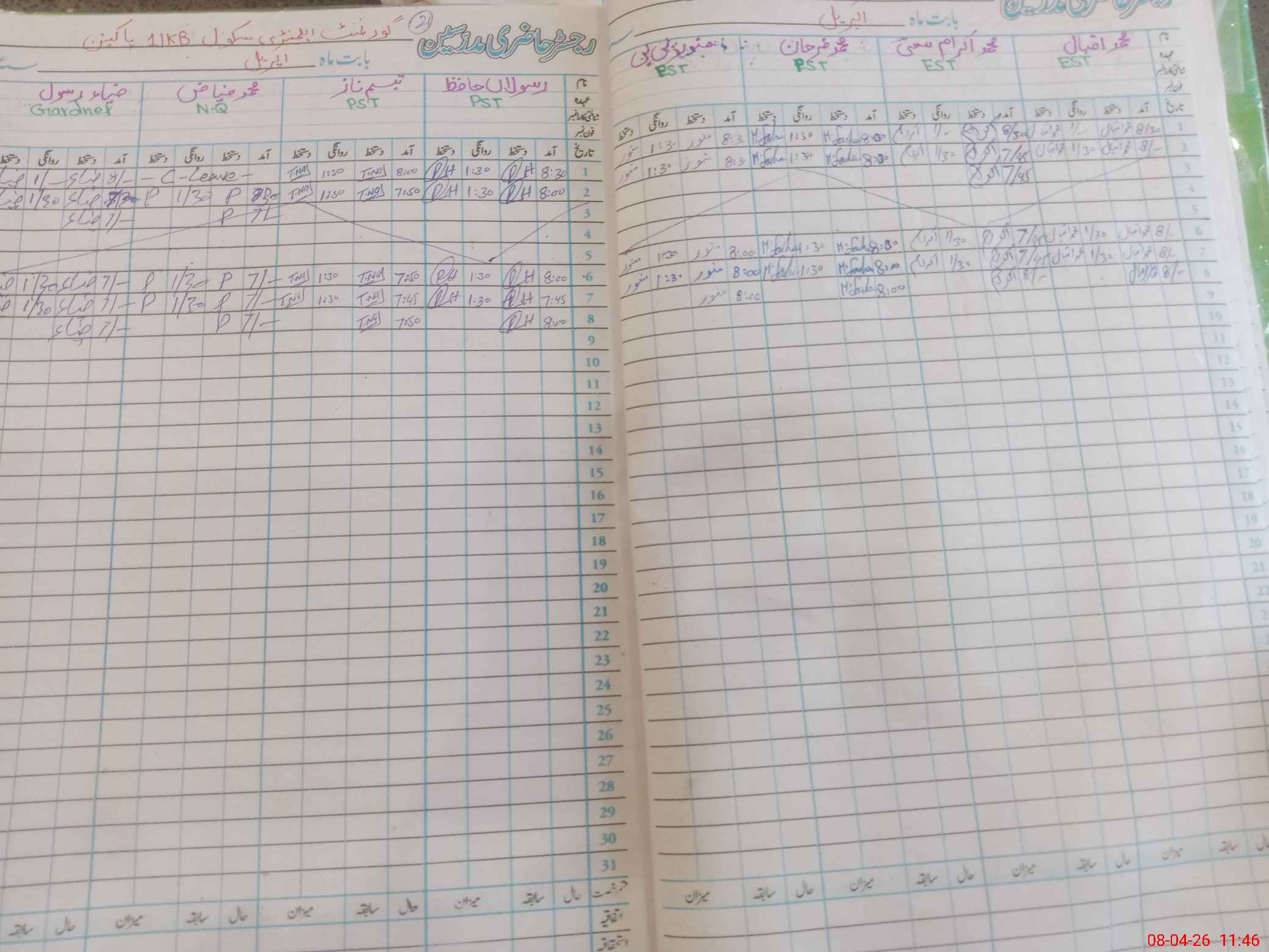 | CNIC | Full Name | Designation | R/C | Absence During Last Calender Month |