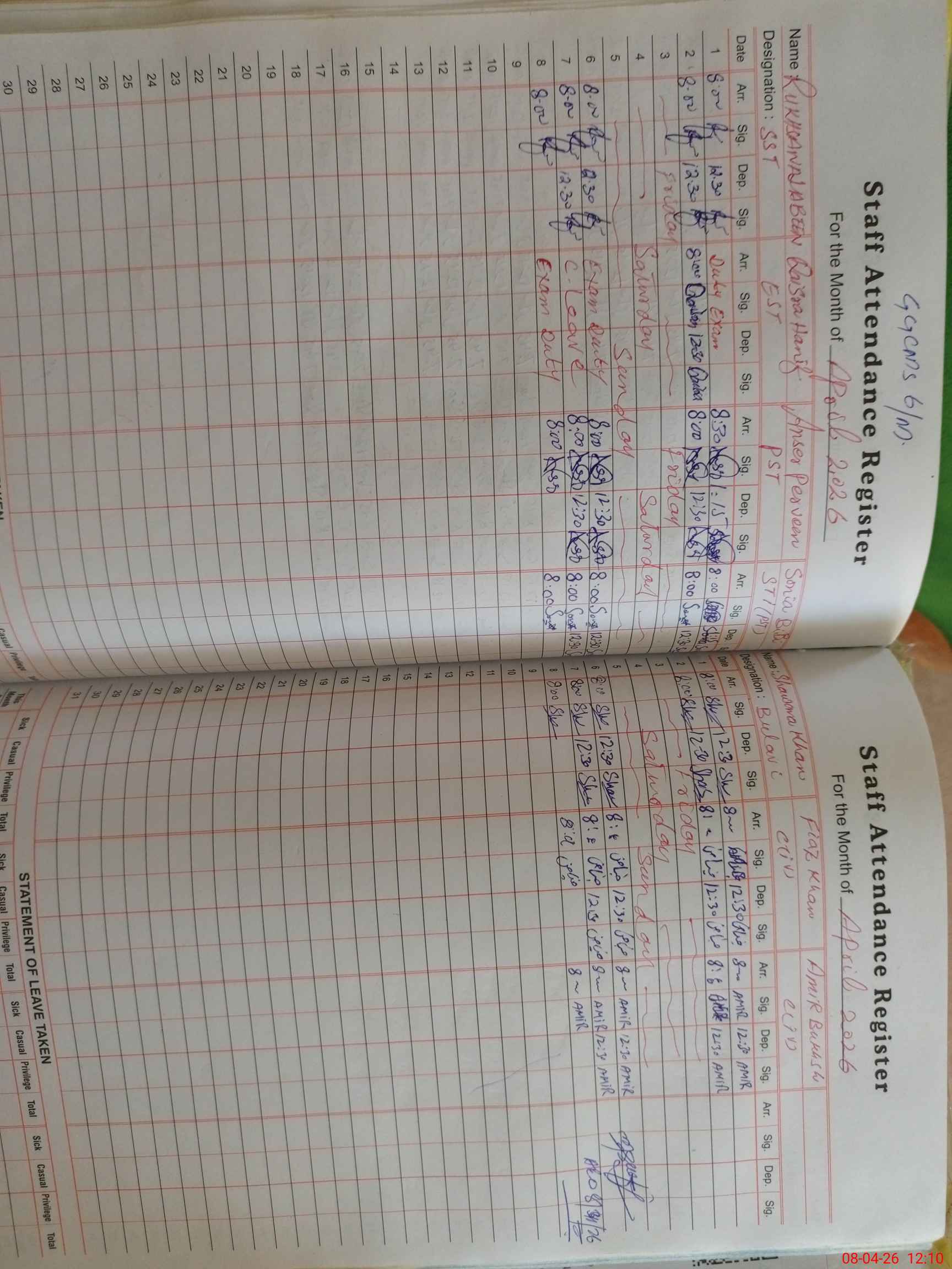 | CNIC | Full Name | Designation | R/C | Absence During Last Calender Month |