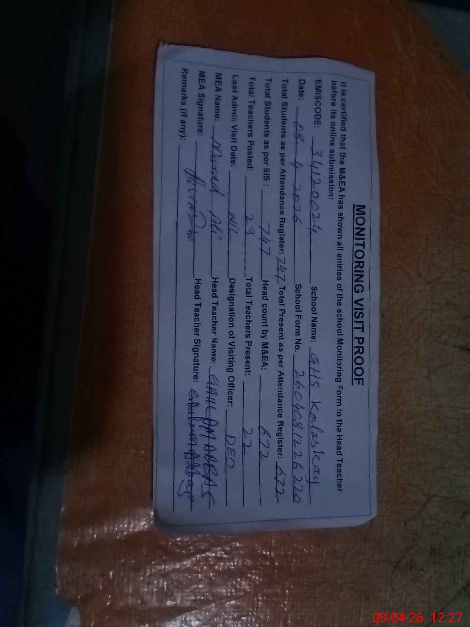 | EMIS Code: 34120024 | Name of School: GHS KALASKAY | |||