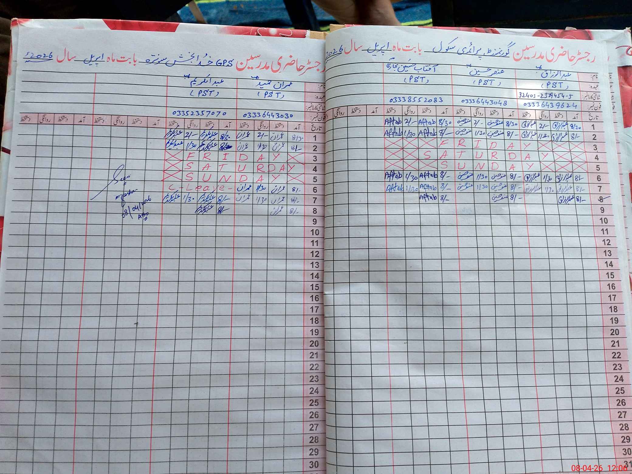 | Name: AB**** RA**** Designation: (School Headmaster's/Headmistress's) HEADMASTER Phone/Cell Number: 03**** |