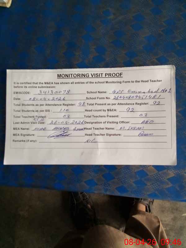 | EMIS Code: 34130078 | Name of School: GPS EMINABAD NO.1 | |||