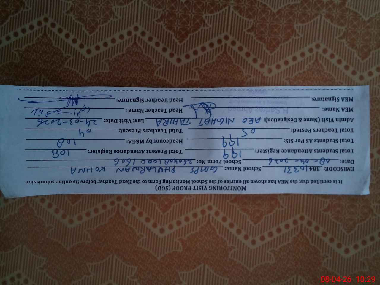 | Certified that this School was Inspected by the Undersigned MEA/DMO Today and the Information Stated Above is as Per Record. | |||||