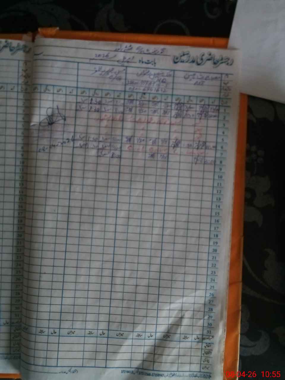 | CNIC | Full Name | Designation | R/C | Absence During Last Calender Month |