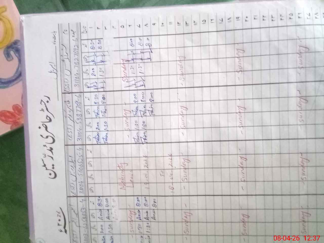 | CNIC | Full Name | Designation | R/C | Absence During Last Calender Month |