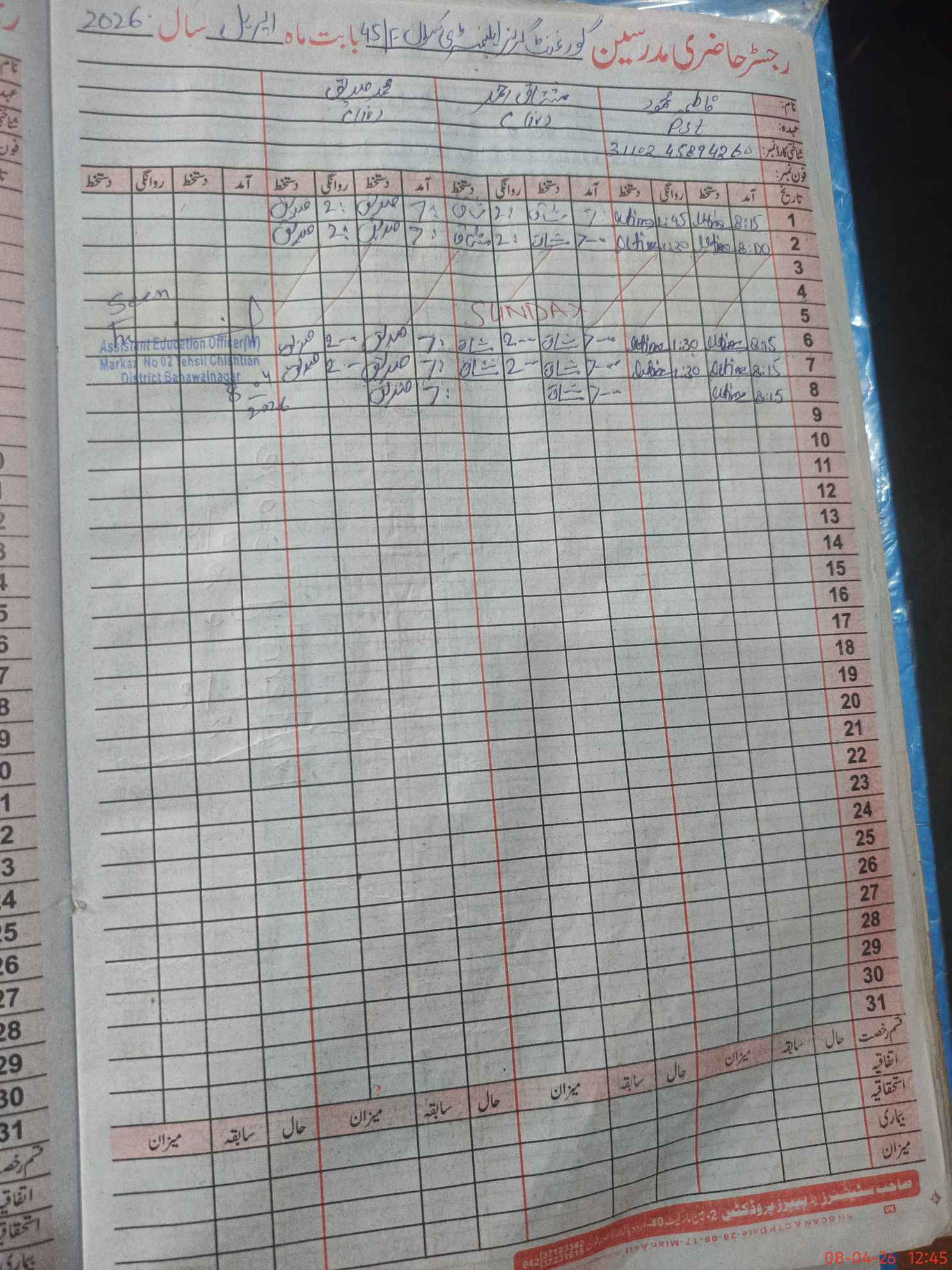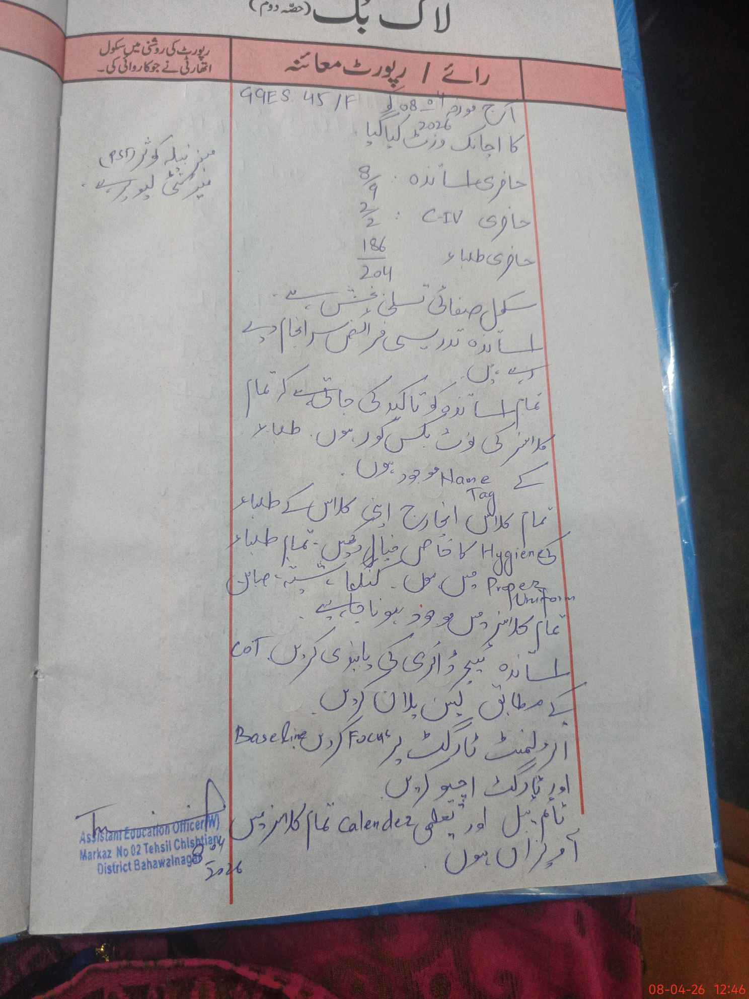 | District: BAHAWALNAGAR | Tehsil: CHISHTIAN | Markaz: CTN -II-FEMALE | Level: Middle | |