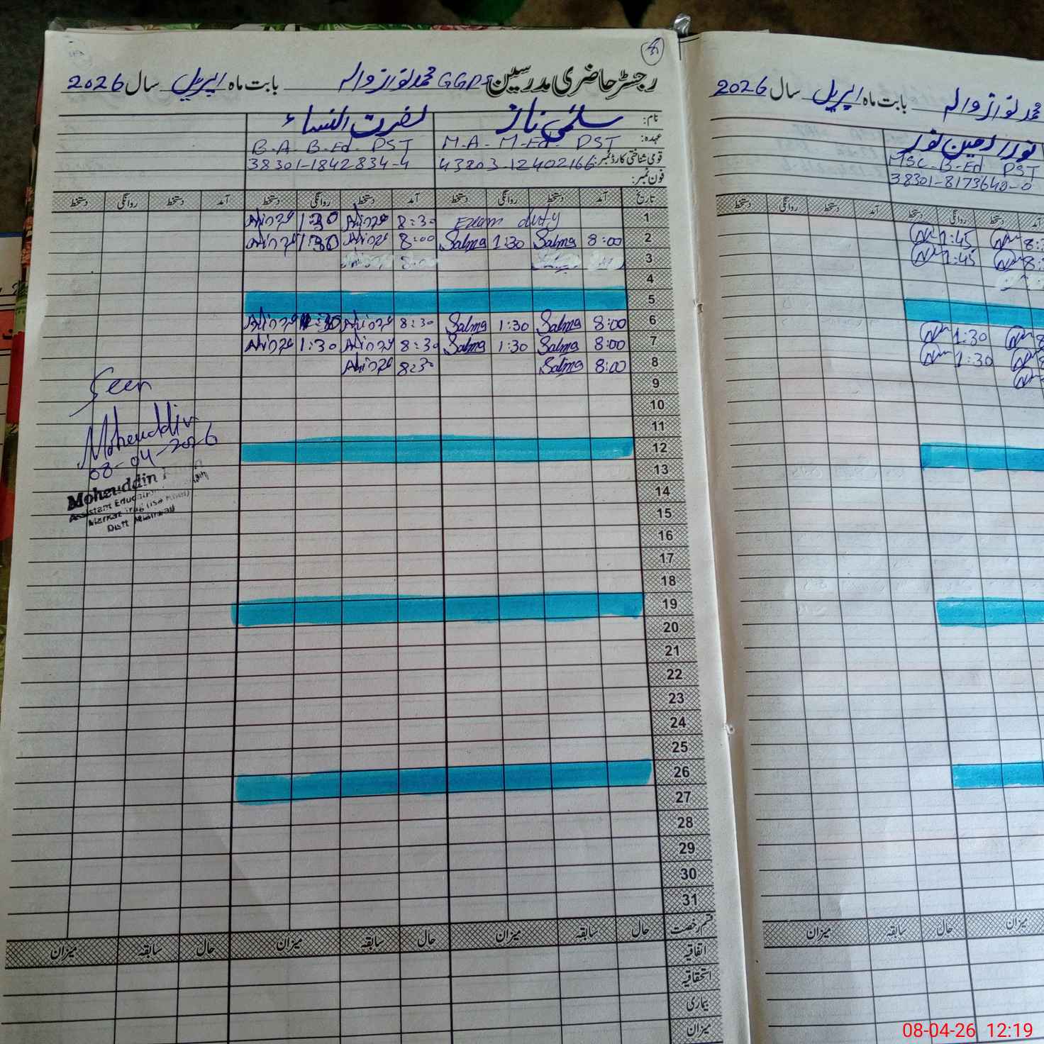 | Name: As**** Fi**** Designation: (School Headmaster's/Headmistress's) PST Phone/Cell Number: 03**** |