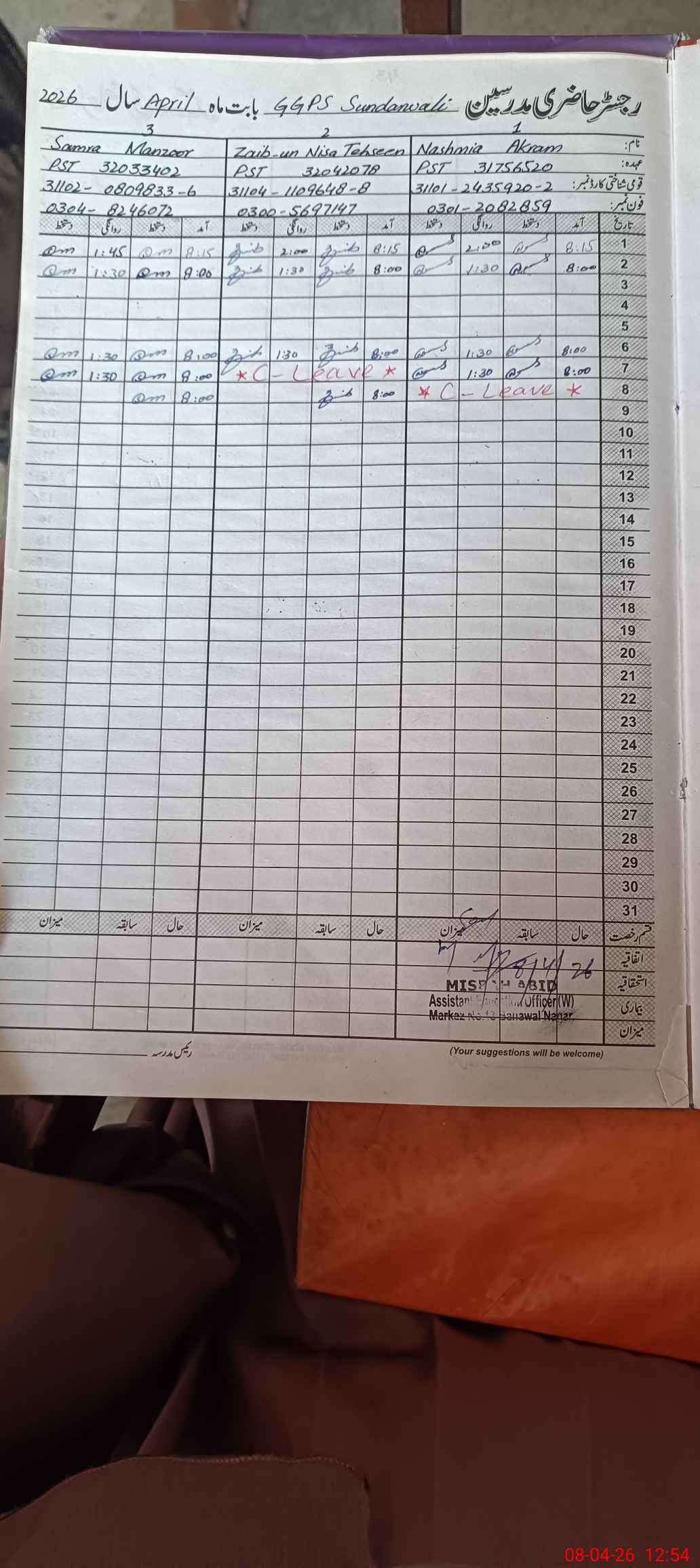 | Name: NA**** AK**** Designation: (School Headmaster's/Headmistress's) PST Phone/Cell Number: 03**** |