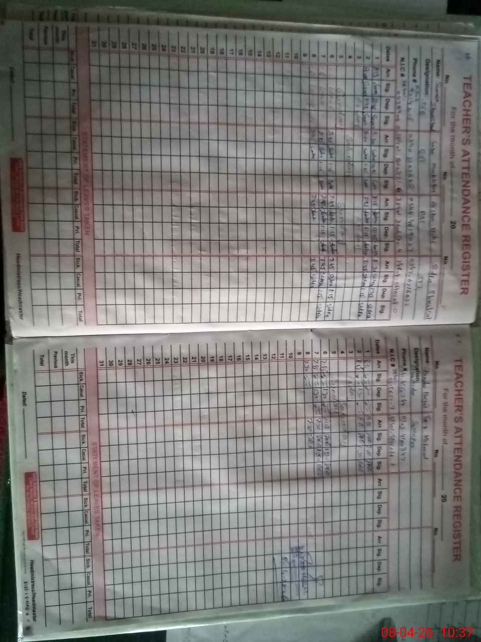 | Name: SU**** SH**** Designation: (School Headmaster's/Headmistress's) SSE ARTS Phone/Cell Number: 03**** |